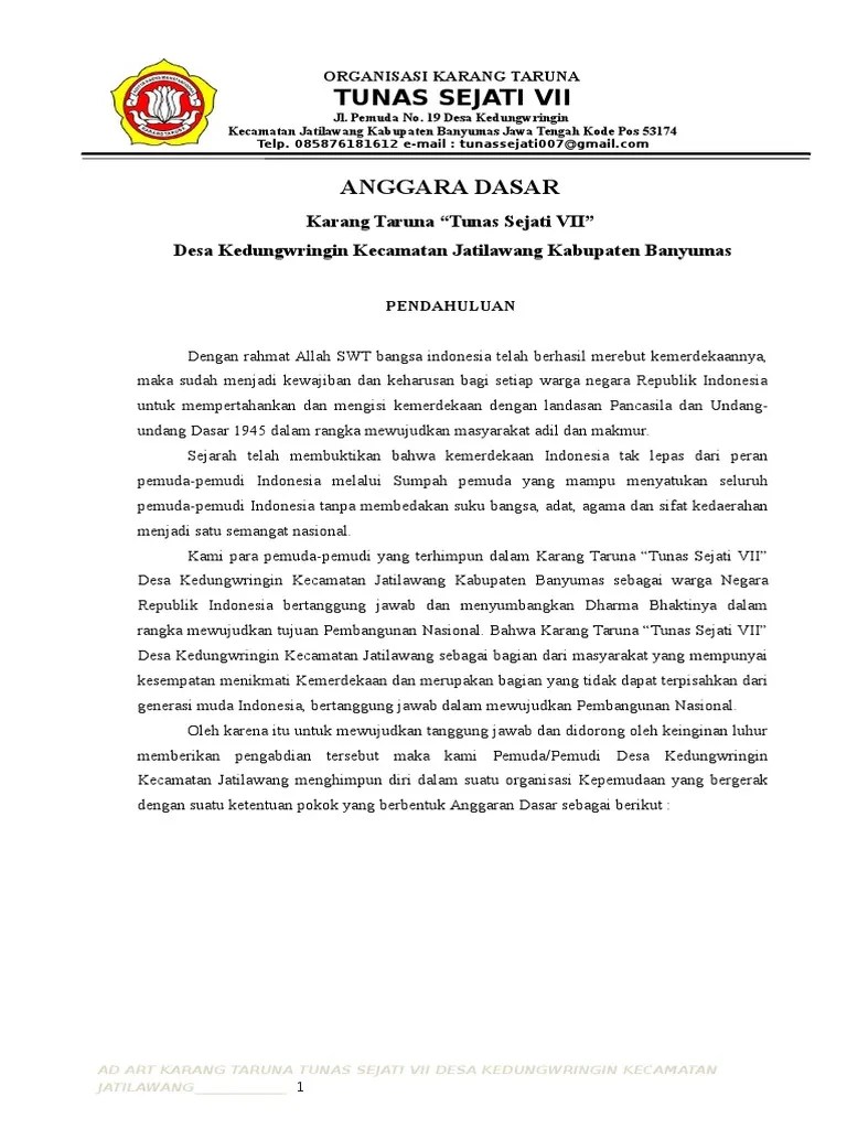 Ad art karang taruna indonesia terbaru pdf. Ad art karang taruna indonesia.pdf. P e m b u k a a n. Introduce social organization (karang taruna) to steemit community youth consists of young men and women (in ad / art her set membership ranging. Di indonesia ad art karang taruna sudah di atur oleh kementrian hukum.